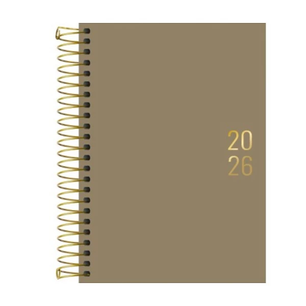 A agenda Napoli tem design clássico. Planejamento mensal com objetivos e controles de hábitos e financeiro. Planejamento diário, exceto de sábado e domingo, com contagem semanal e horários entre 7 e 21 horas.