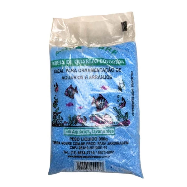 A areia de quartzo colorida da marca Terra Nobre, na cor Azul claro e com peso de 950g, é uma excelente escolha para quem procura ornamentar aquários ou arranjos decorativos. Essa areia pode ser usada em terrários ou em projetos de decoração, como vasos de plantas, proporcionando um toque colorido. Não altera o pH da água nem interfere no equilíbrio. Características