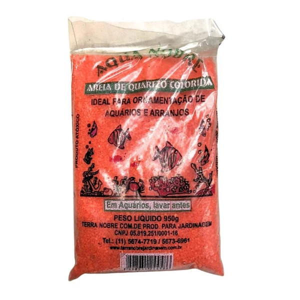 A areia de quartzo colorida da marca Terra Nobre, na cor laranja e com peso de 950g, é uma excelente escolha para quem procura ornamentar aquários ou arranjos decorativos. Essa areia pode ser usada em terrários ou em projetos de decoração, como vasos de plantas, proporcionando um toque colorido. Não altera o pH da água nem interfere no equilíbrio. Características