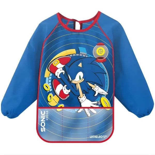 Avental Infantil com Mangas Sonic Leo&Leo. Avental infantil com mangas, impermeável, bolso triplo e confortável, que proporciona a diversão para as crianças mantendo as roupas limpas.