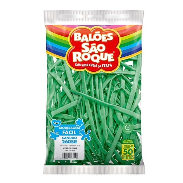 Balão Canudo 260SR Cor Verde Folha Pacote com 50 unds São Roque. Características
