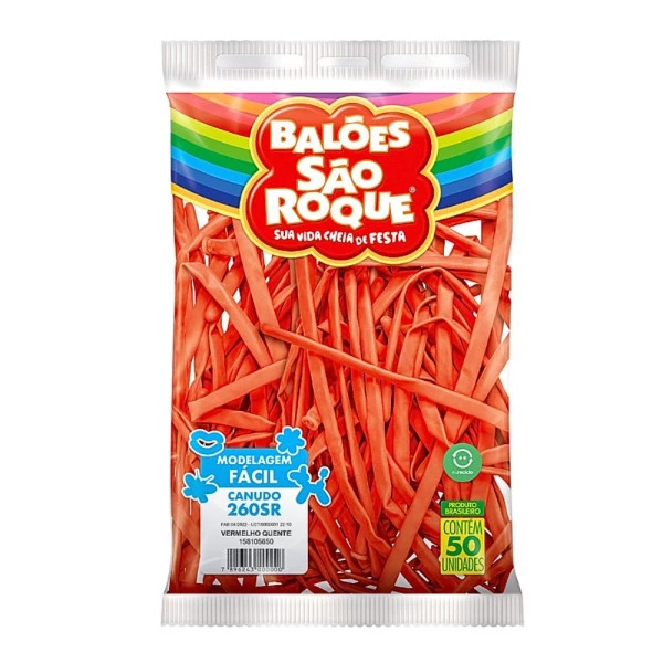 Balão Canudo 260SR Cor Vermelho Quente Pacote com 50 unds São Roque. Características