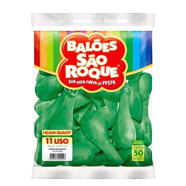 Balão Liso11 Polegadas Cor Verde Bandeira Pacote com 50 unds Helium Quality São Roque. Características