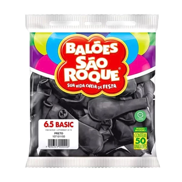 Balão 6.5 Liso Preto Pct/ 50und São Roque