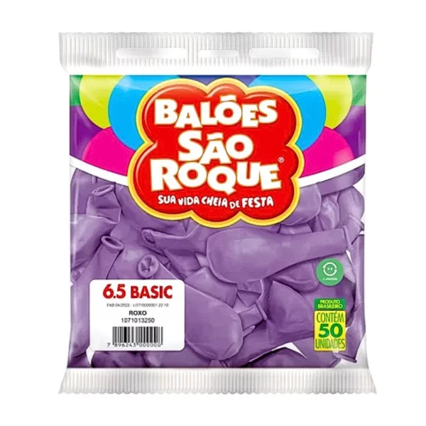 Balão Liso 6.5 Polegadas Cor Roxo Pacote com 50 unds São Roque. Características