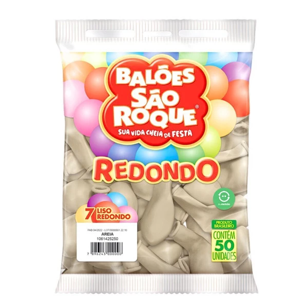 Balão 7 Liso Redondo Areia Pct/ 50und São Roque
