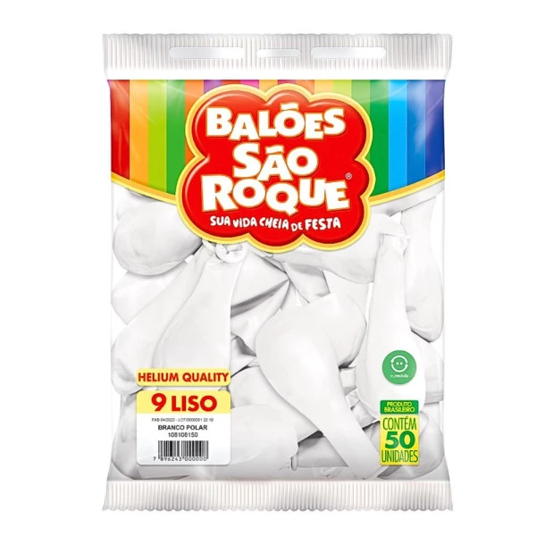Balão Liso 9 Polegadas Cor Branco Polar Pacote com 50 unds Helium Quality São Roque. Características