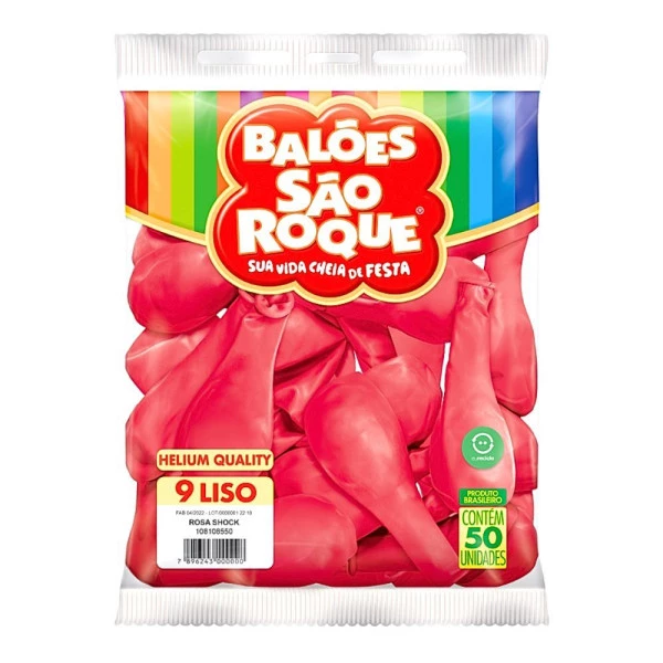 Balão Liso 9 Polegadas Cor Rosa Shock Pacote com 50 unds Helium Quality São Roque. Características