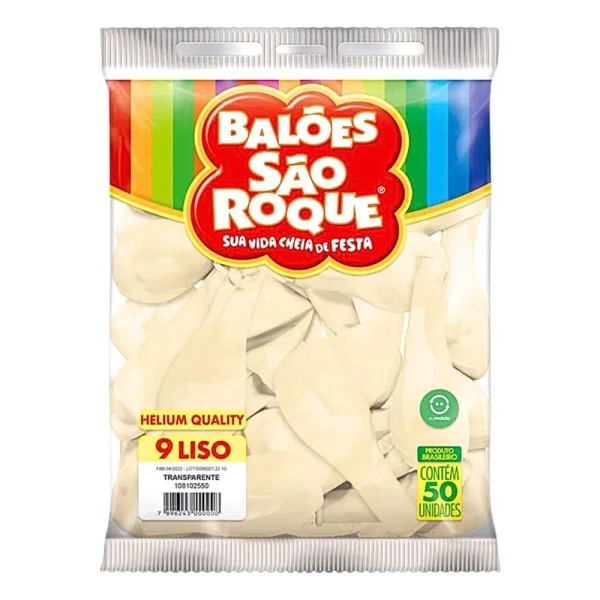 Balão Liso 9 Polegadas Cor Transparente Pacote com 50 unds Helium Quality São Roque. Características