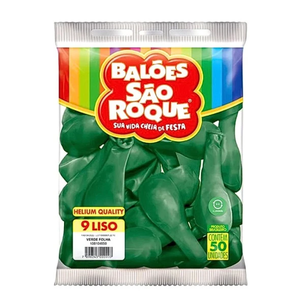 Balão Liso 9 Polegadas Cor Verde Folha Pacote com 50 unds Helium Quality São Roque. Características
