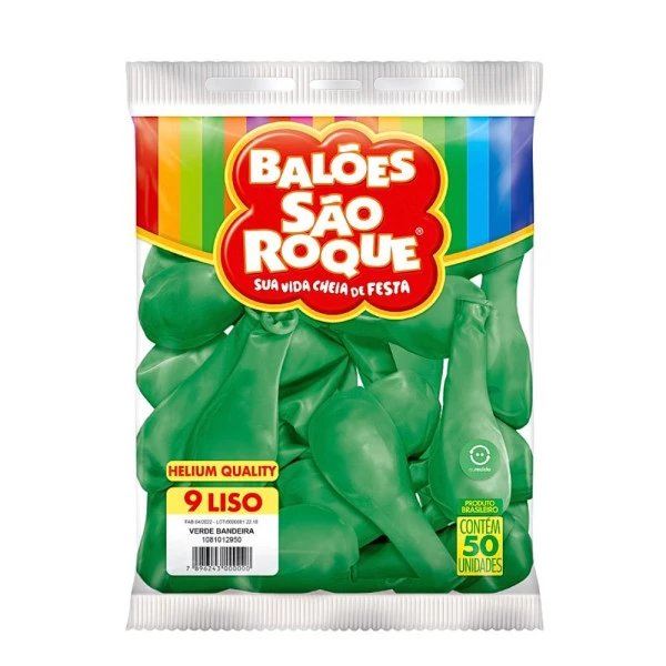 Balão Liso 9 Polegadas Cor Verde Maça Pacote com 50 unds Helium Quality São Roque. Características
