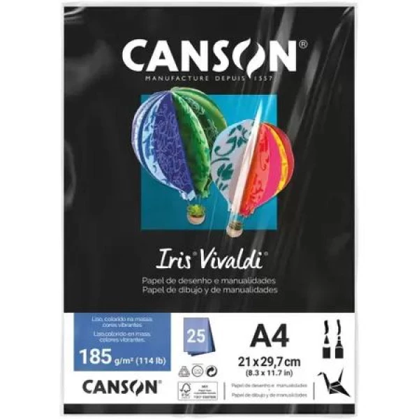 Bloco Canson Iris Vivaldi A4 Preto 25F 185g Características