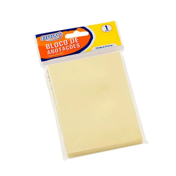 O Bloco de Notas Adesivas BRW Smart Notes é a escolha ideal para quem busca organização prática e visualmente agradável. No tamanho 76x102mm, com 100 folhas em tom amarelo pastel, oferece espaço extra para recados, lembretes e anotações detalhadas. Possui ótima aderência, pode ser removido e recolocado sem danificar superfícies e garante destaque suave e elegante no seu dia a dia. Ideal para escritórios, estudos e planejamentos.