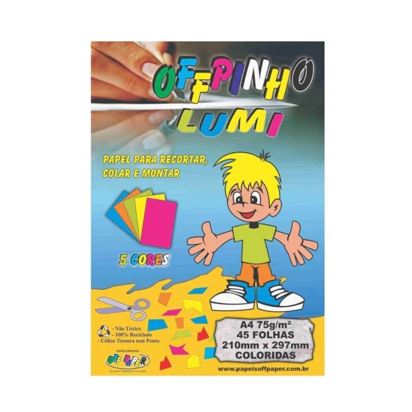 Papel Offipinho Criativo Lumi 5 Cores A4 75g 45fls