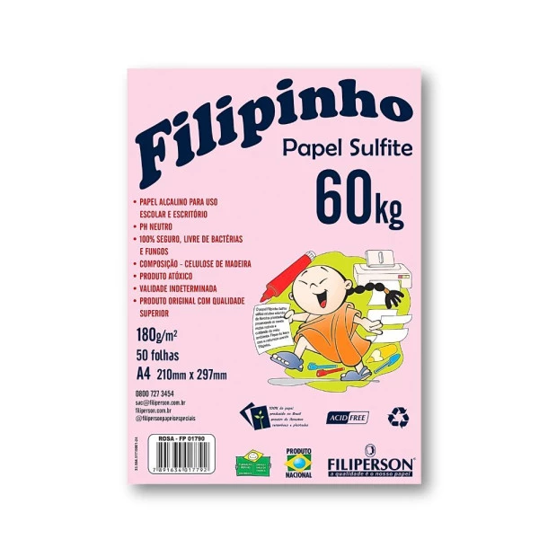 Papel Sulfite Filipinho Rosa 180g/m² A4 50Fls Filiperson