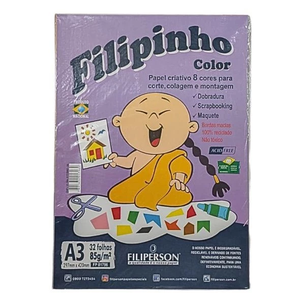 Com 8 cores vibrantes em formato A3, o Bloco Filipin Criativo é ideal para trabalhos manuais, desenhos, colagens e outras atividades artísticas. Sua gramatura de 85g/m² oferece a resistência necessária para diversas técnicas, garantindo que as folhas suportem bem o uso de cola, tesoura e outros materiais de arte. Características