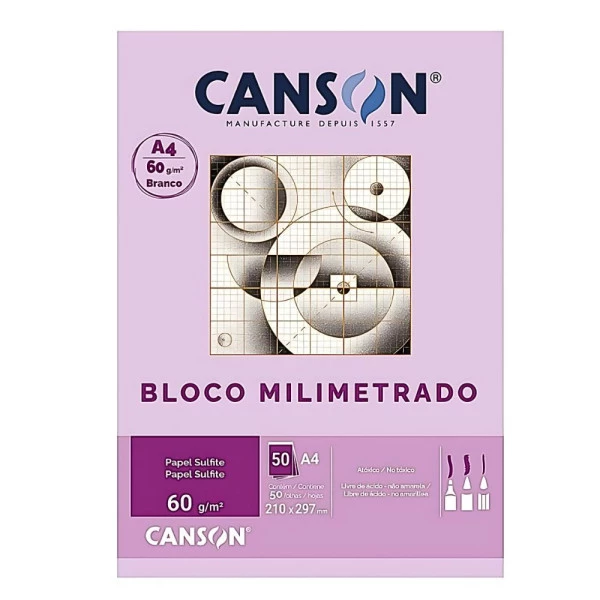 Bloco Canson Milimetrado A4 60g Branco 50F