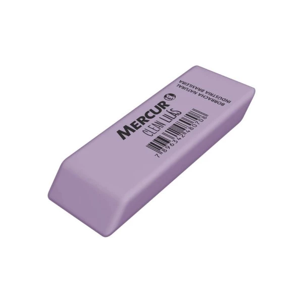 Borracha Clean Lilás Mercur, macia, com formato chanfrado que auxilia na precisão ao apagar. Indicada para desenhistas. Características