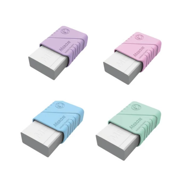 Borracha TR 18 Tons Pastel Mercur acompanha capa protetora que protege da sujeira e proporciona firmeza ao apagar.