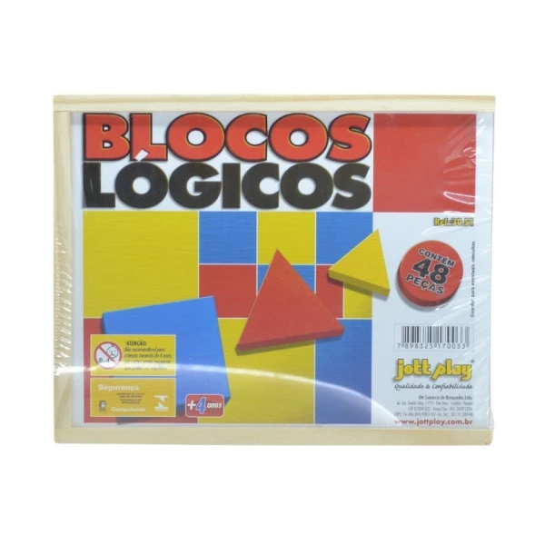 Brinquedo educativo blocos logicos 48 pcs em madeira Jott Play, permite que o aprendizado ocorra de maneira concreta e reflexiva. Acompanha blocos em diferentes formas geométricas (círculos, quadrados, retângulos, triângulos). Características
