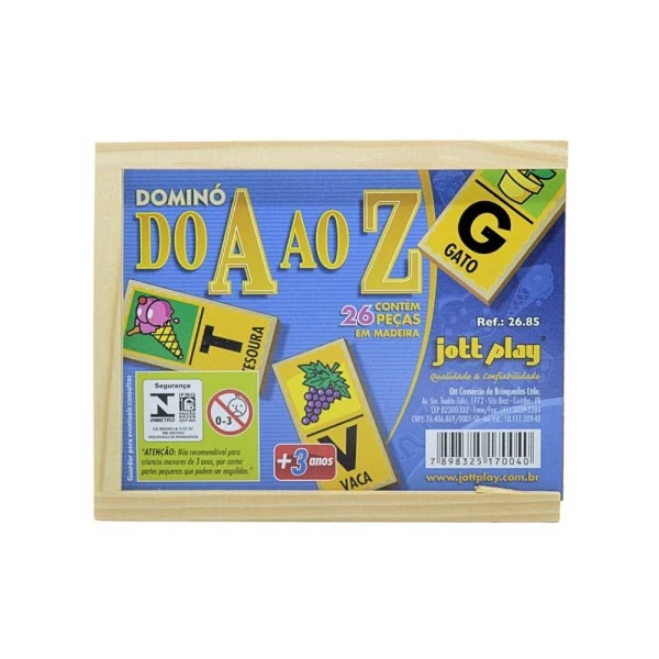 Domino do A ao Z 24 peças em mdf 26.85 Jott Play Características