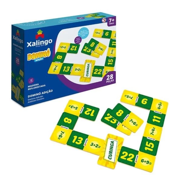 O Dominó Adição da Xalingo transforma o aprendizado da matemática em um momento de diversão! As crianças resolvem operações e encontram as peças correspondentes, praticando o cálculo mental de forma leve e envolvente.