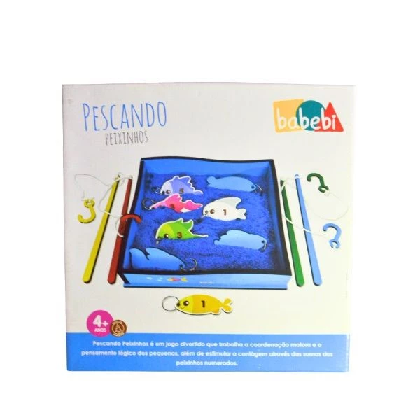 Contem 8 peixinhos numerados ,4 varas de pesca e uma caixinha e areia colorida infantil(atoxica ,antialergica e livre e poeira).