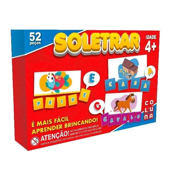 Aprender a soletrar palavras fica divertido com o Brinquedo Educativo Soletrar da Coluna! As crianças combinam letras para formar palavras, explorando a escrita de forma lúdica e interativa.