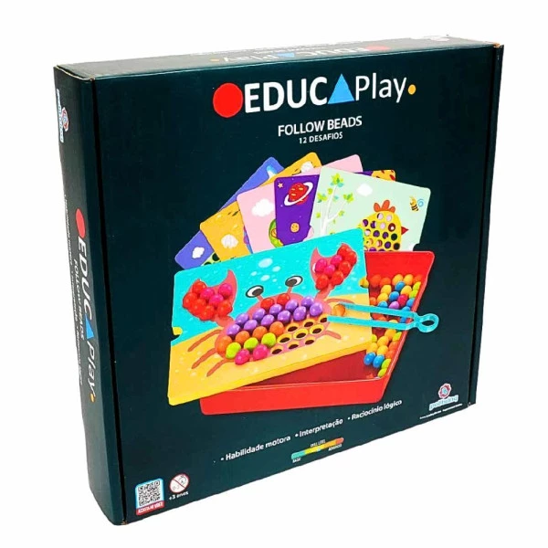 O Brinquedo Follow Beads Educa Play é um jogo educativo que estimula o desenvolvimento cognitivo e motor das crianças, preparando-as para a escrita. Utilizando pinças para pegar beads, propõe 12 desafios com exercícios de separação por cor e sequência. Além disso, aprimora a percepção visual e a linguagem, tornando o aprendizado divertido e envolvente. Características
