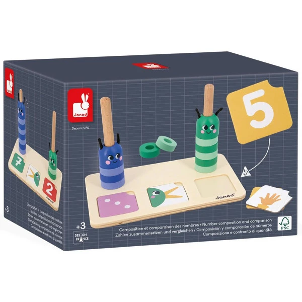 Nossas duas lagartas travessas estão à disposição para ajudar as crianças a aprender a contar e comparar! Este lindo jogo educativo de madeira – adequado para crianças a partir de 3 anos – tornará este conceito mais fácil de entender, exibindo fisicamente os números e manipulando-os em termos de volume. Características
