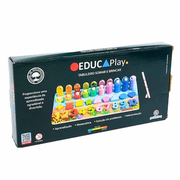 O Tabuleiro Somar e Brincar Educa Play é um jogo educativo de madeira que ensina matemática de forma divertida por meio da pescaria. Estimula a compreensão das operações matemáticas, agilidade, atenção e concentração, além de promover o faz de conta e a interação entre as crianças.