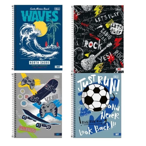 Caderno espiral capa dura universitario 12 matéria 192 folhas Hit masculino Tilibra. Caderno Hit é um lançamento da tilibra prático e funcional inspirado nos jovens, com cores e desenhos alegres. Possui capa dura e folhas pautadas.