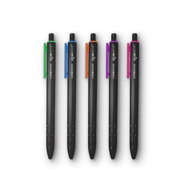 Caneta Esferográfica Retrátil Ponta 0.7 Carbon Line Cores Sortidas da Jocar. Caneta conhecida por seu design moderno e sofisticado, oferecendo uma escrita suave e precisa com uma ponta de 0.7mm. O mecanismo retrátil garante maior praticidade e durabilidade.