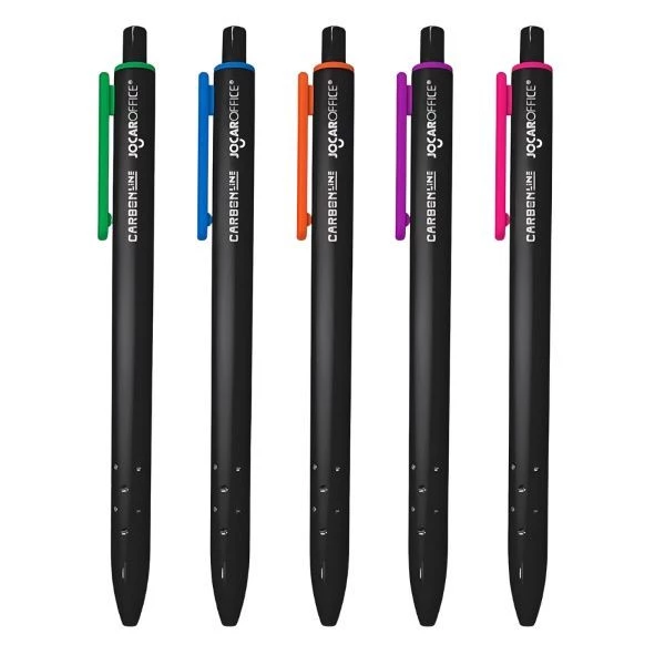 Caneta Esferográfica Retrátil Ponta 0.7 Carbon Line Sortida Azul/Vermelha/Preta da Jocar. Caneta conhecida por seu design moderno e sofisticado, oferecendo uma escrita suave e precisa com uma ponta de 0.7mm. O mecanismo retrátil garante maior praticidade e durabilidade.