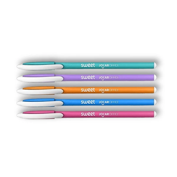 Caneta Esferográfica Perfumada Sweet Ponta 0.7 cores sortidas da Jocar. Possui uma ponta 0.7mm, que proporciona precisão na escrita. Seu diferencial dessas canetas está no perfume suave, oferecendo um toque divertido e agradável. Possui uma fragrância que remete a cor do seu corpo e da sua tinta, são cinco aromas diferentes maçã verde, jasmim, laranja, morango e lavanda.