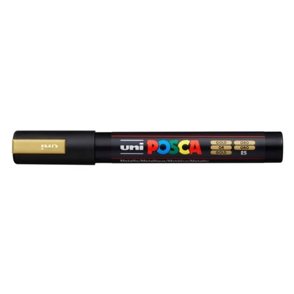 Caneta Uni Posca 1.8-2.5 Ouro PC-5M, escreve na maioria das superfícies, como cartões, cerâmica, madeira, metais, tecidos, porcelanas, plástico, vidro e muitas outras, delivery e retirada