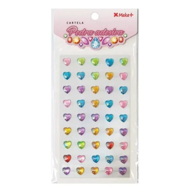 CARTELA DE ADESIVO 3D CORAÇÃO COLORIDO 10MM | MAKE+ REF 5376