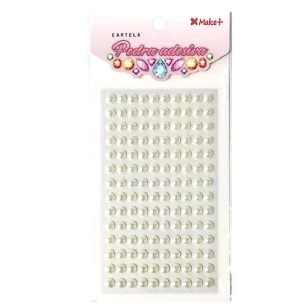 CARTELA DE ADESIVO 3D MEIA PEROLA COR PEROLA 8MM | MAKE+ REF 5338