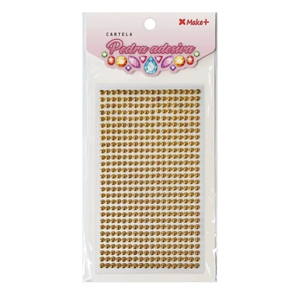 CARTELA DE ADESIVO 3D MEIA PEROLA OURO METAL 4MM | MAKE+ REF 5323