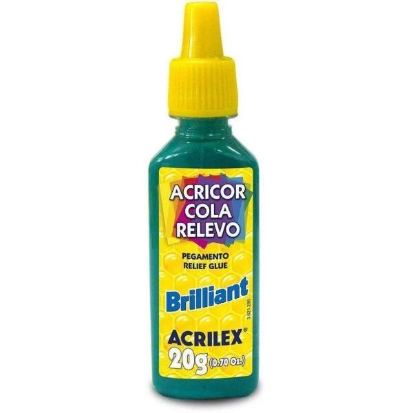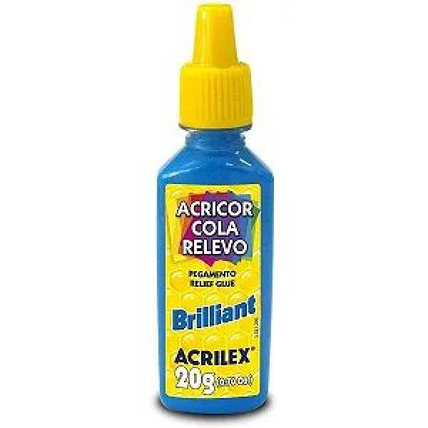 A Cola Relevo Brilliant Acrilex cria um efeito decorativo em relevo com acabamento brilhante e vibrante. Ideal para trabalhos escolares e artesanais, pode ser aplicada em papel, papel cartão, cartolina e EVA. Possui bico aplicador para maior precisão, aroma suave e secagem rápida. Características