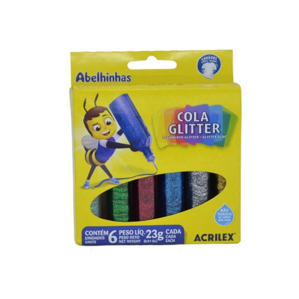 Para fazer colagens, decorar e pintar sobre papel, papel cartão e cartolina. Possui brilho intenso com glitter.