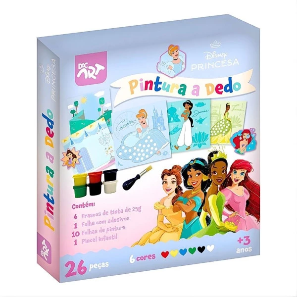 O Conjunto de Pintura a Dedo Princesas 18 Peças – Dac Art é perfeito para transformar momentos de brincadeira em experiências cheias de cor, criatividade e diversão. Inspirado nas encantadoras Princesas Disney, o kit foi desenvolvido especialmente para crianças, com tintas seguras, não tóxicas e laváveis, garantindo uma atividade artística sem preocupações.