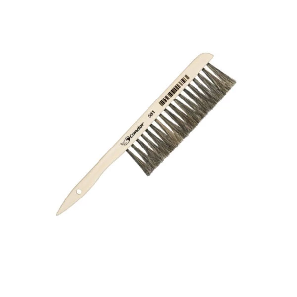 Escova para limpar desenhos da Condor, possui cabo curto de madeira com cedas natural Características