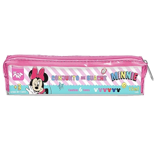 ESTOJO TINTA GUACHE 6 CORES 15ML CADA MINNIE PVC - CORES VIBRANTES