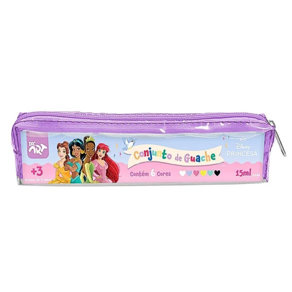 ESTOJO TINTA GUACHE 6 CORES 15ML CADA PRINCESAS PVC LAVÁVEL - CORES VIBRANTES