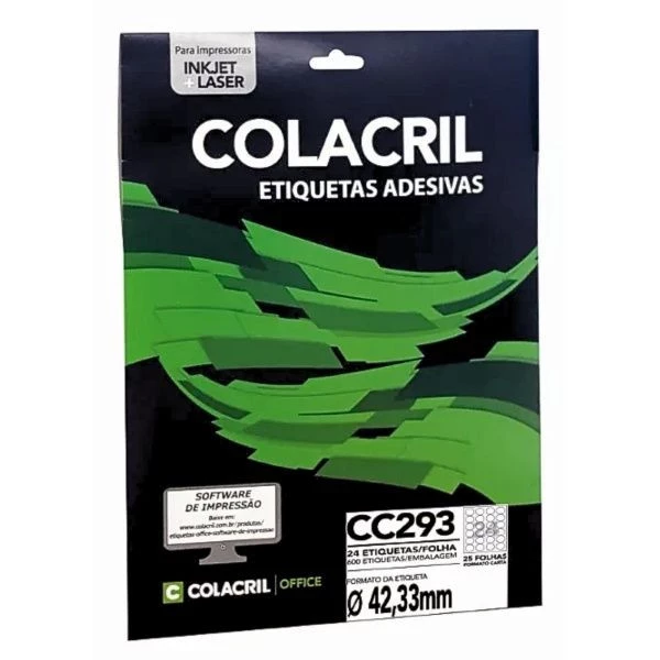 Etiquetas Adesiva multiuso Carta Redonda Branca 24 42,33mm 25 Folhas Branca cc293 colacril. Ideal para etiquetagem de pequenos produtos, identificação de itens, organização de estoque e documento diversos., pastas, arquivos, caixas, envelopes, crachás, tags., entre outros usos. Indicadas para impressoras de jato de tinta e laser. Características