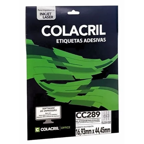 Etiqueta adesiva carta Inkjet ou laser 60 16,93 x 44,45mm 25 folhas branca cc289 colacril. Ideal para etiquetas de endereçamento, identificação de produtos, organização de documentos e arquivos, e etiquetas de inventário. Indicadas para impressoras de jato de tinta e laser. Características