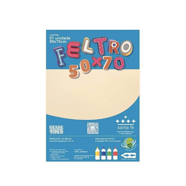 Feltro Liso Bege Palha180g 50x70cm Santa Fé Características