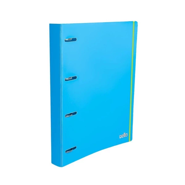Fichário Pasta PP 4 Argolas Full Color Azul da Dello. Formato padrão A4, material em polipropileno, e quatro argolas metálicas. Perfeito para organizar trabalhos escolares, documentos profissionais ou projetos pessoais.