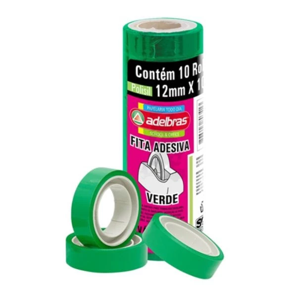 Fita Adesiva Escolar Verde 12mm x 10m Polisil 515 Adelbras